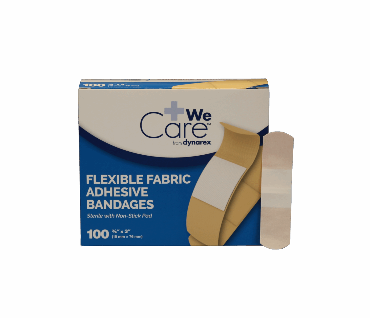 Dynarex Fabric Adhesive Bandages 3/4” x 3″. These light woven flexible elastic cloth fabric bandages are ideal for businesses and organizations looking for a cost-friendly bandage that is lightweight, comfortable and has a long-lasting adhesive that is gentle on skin.