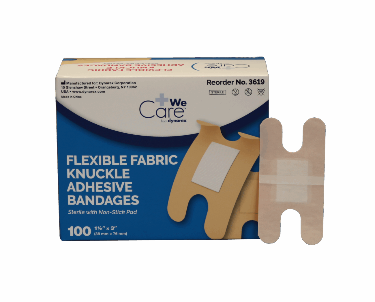 Dynarex Fabric Knuckle Bandages. These light woven flexible elastic cloth fabric bandages are ideal for businesses and organizations looking for a cost-friendly bandage that is lightweight, comfortable and has a long-lasting adhesive that is gentle on skin.