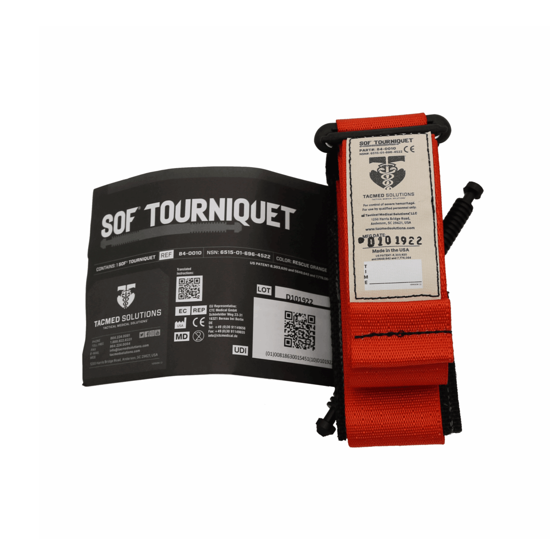 SOF Tourniquet by TacMed in Rescue Orange. The tourniquet of choice by many of the USA’s largest police departments. This tourniquet meets the new ANSI/ISEA Z308.1-2021 standard. It has a US Patented design and proprietary technology that was developed and engineered by a former Special Operations Medic.