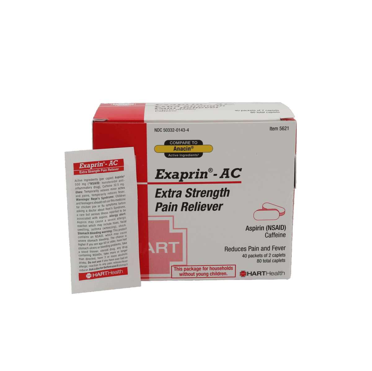 Exaprin-AC extra strength pain reliever/fever reducer from Hart Health. *New formula reduces pain and fever.