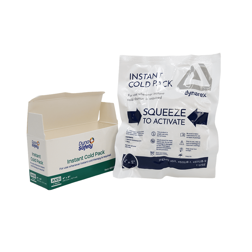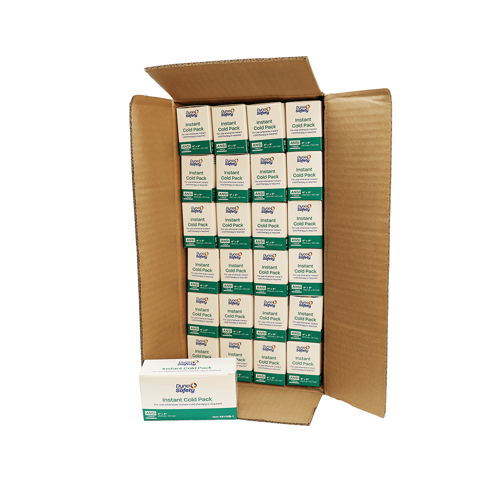 These Dynarex 4″ x 5″ cold packs are a reliable choice for meeting ANSI and OSHA first aid requirements in the office or on the job site. They are also a great addition to first aid kits for schools, recreation centers, and sports teams. You can choose a single individually boxed pack for quick refills or a full case of 72 for high-volume restocking. Because each pack is individually boxed even inside the case, your bulk inventory stays organized and protected from getting activated by mistake.