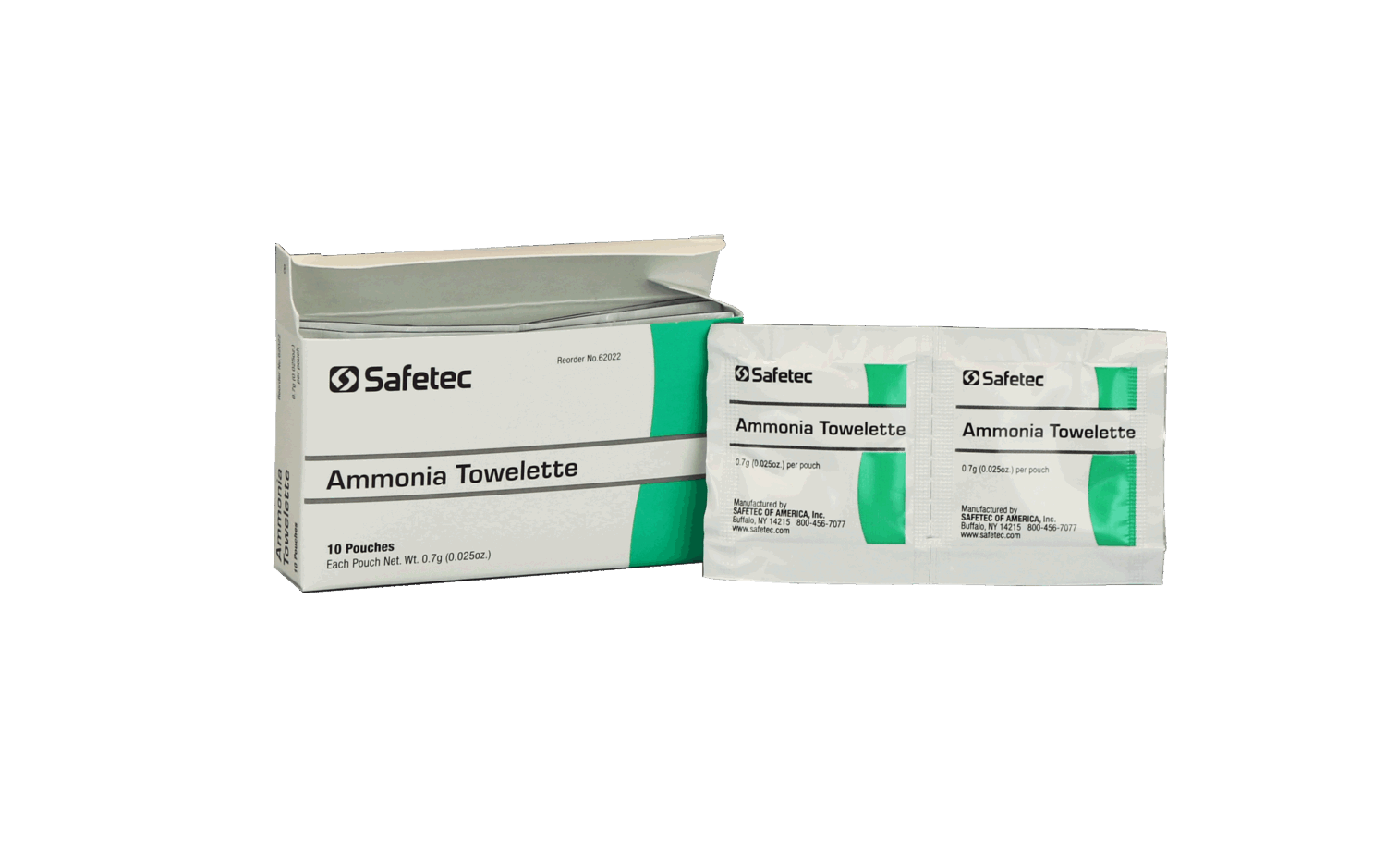 Ammonia inhalant pads from Safetec. Used as an external stimulant. Each pad is individually sealed in a pouch, packed 10 per box.